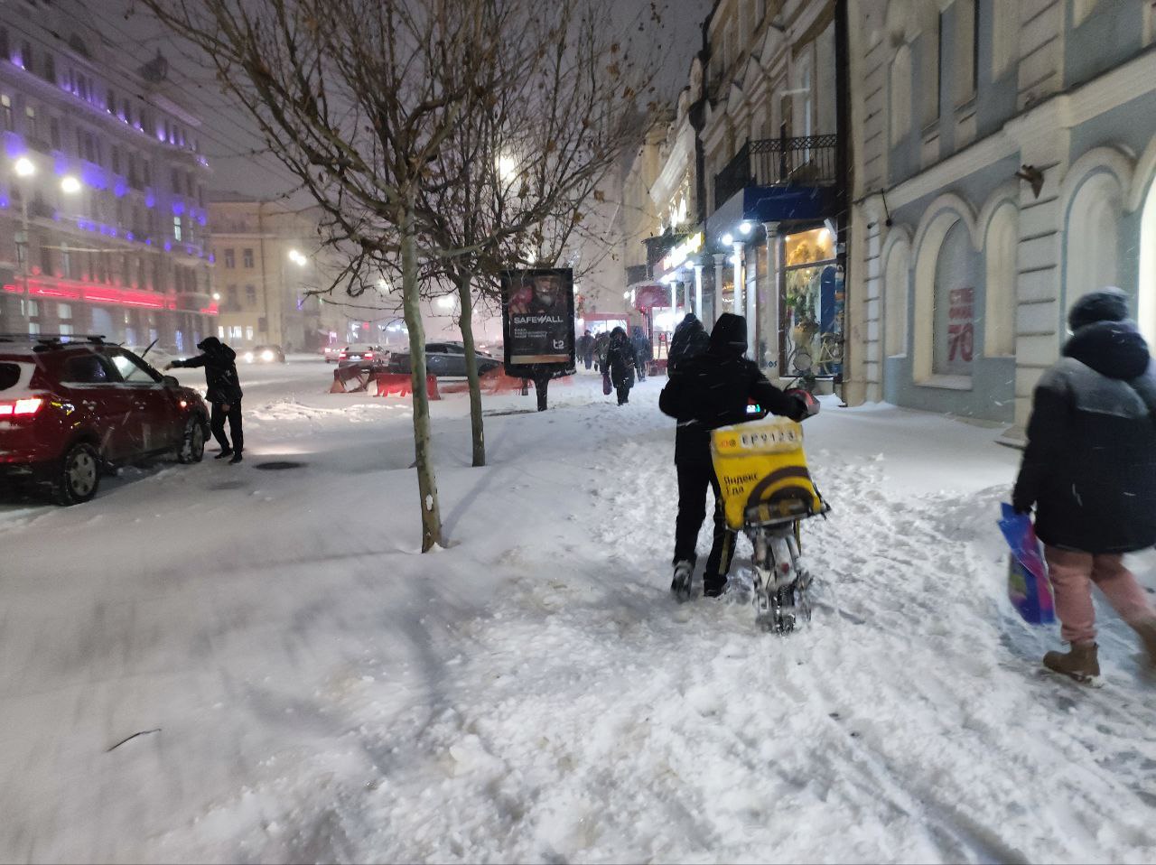 Нелегко было доставщикам. Те, кто порезвее и пешком, оказались в более выгодном положении, чем электросамокатчики.