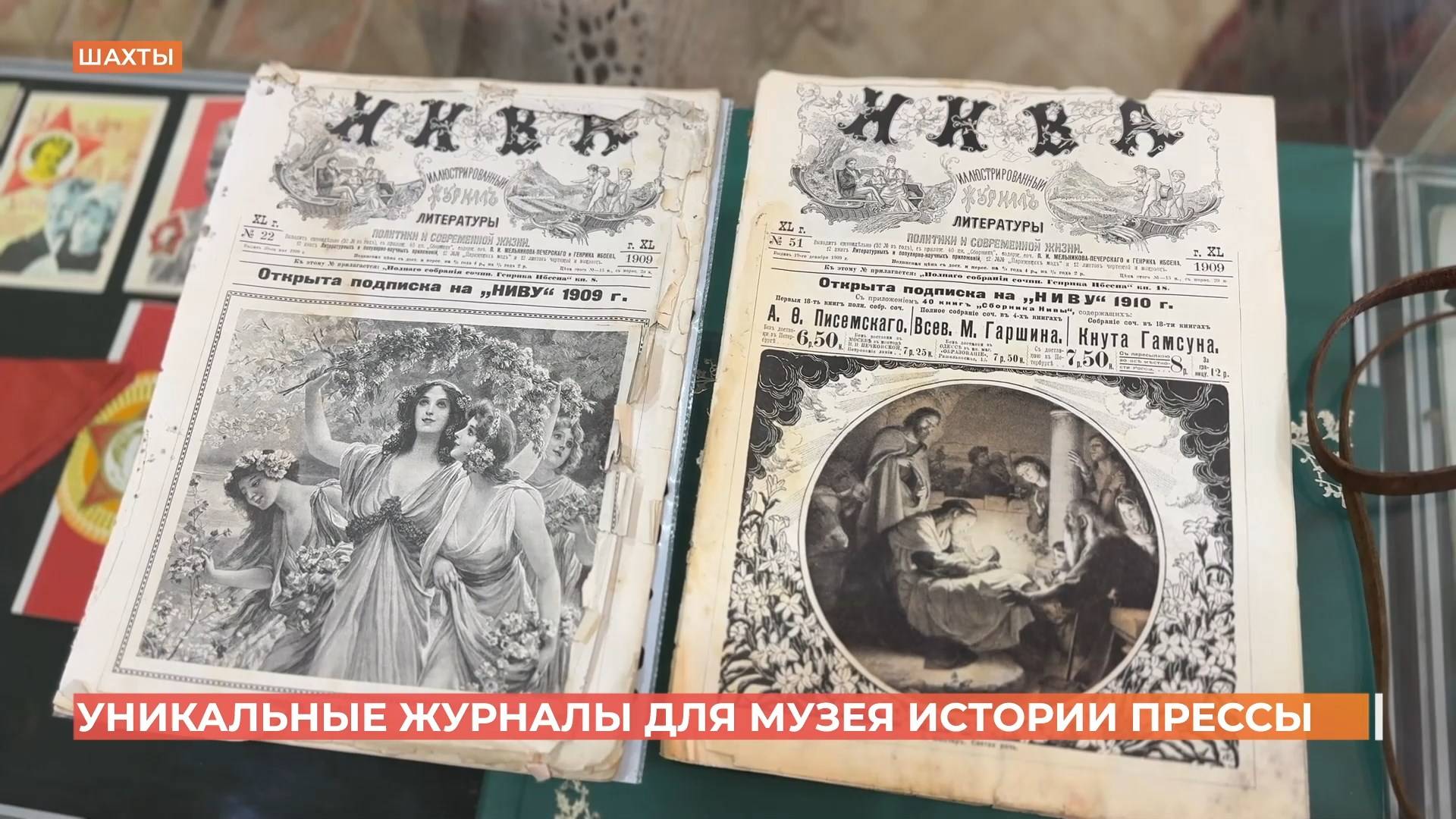 Два выпуска дореволюционной "Нивы" - иллюстрированного журнала литературы - дополнят экспозицию будущего музея истории прессы. Передали их педагоги в музее 27-ой школы инициатору создания музея Сергею Новикову. К далекому 1909-му году можно буквально прикоснуться: узнать как раньше признавались в любви, сватались, боролись с мухами или украшали елку к Рождеству.