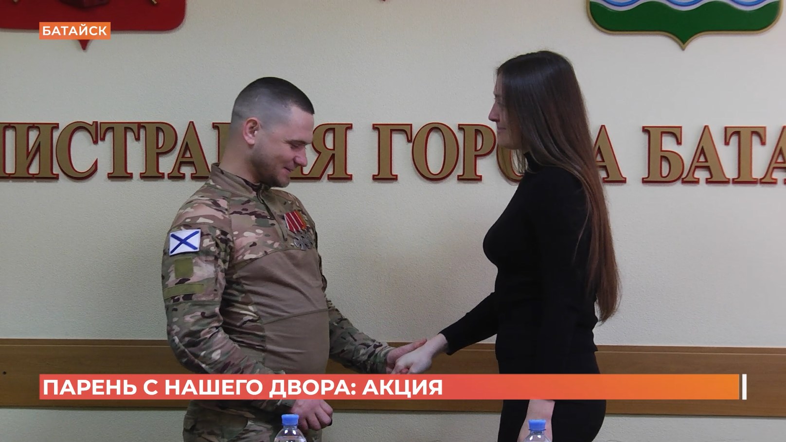 "Парень с нашего двора" - такую акцию провели в Батайске. Ее цель - воспитывать молодежь на нынешних героях, буквально живущих по соседству. Там же за круглым столом обсудили важные вопросы и вручили одному из таких героев награду "За боевые отличия".