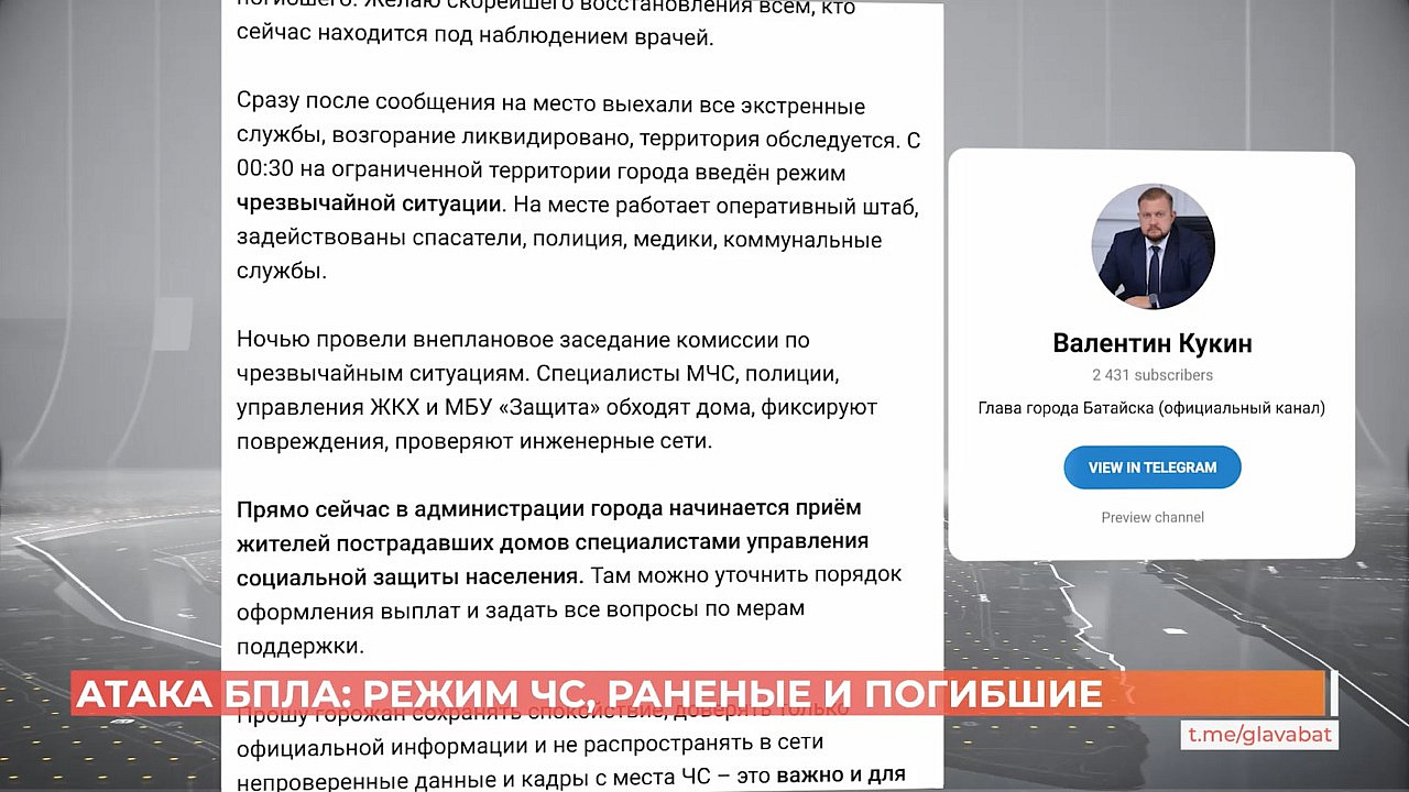 Сегодня ночью Батайск оказался под атакой БПЛА. Сразу после сообщения на место выехали все экстренные службы, возгорание ликвидировано, - написал в своем телеграм-канале глава города. С нуля часов 30 минут на ограниченной территории введён режим чрезвычайной ситуации, создан оперативный штаб. На место трагедии прибыл Юрий Слюсарь.