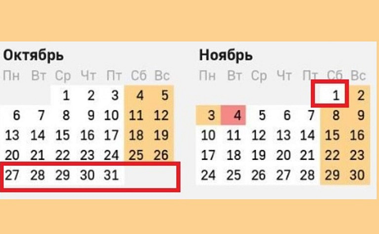 Таким образом октябрь завершится шестидневной рабочей неделей.