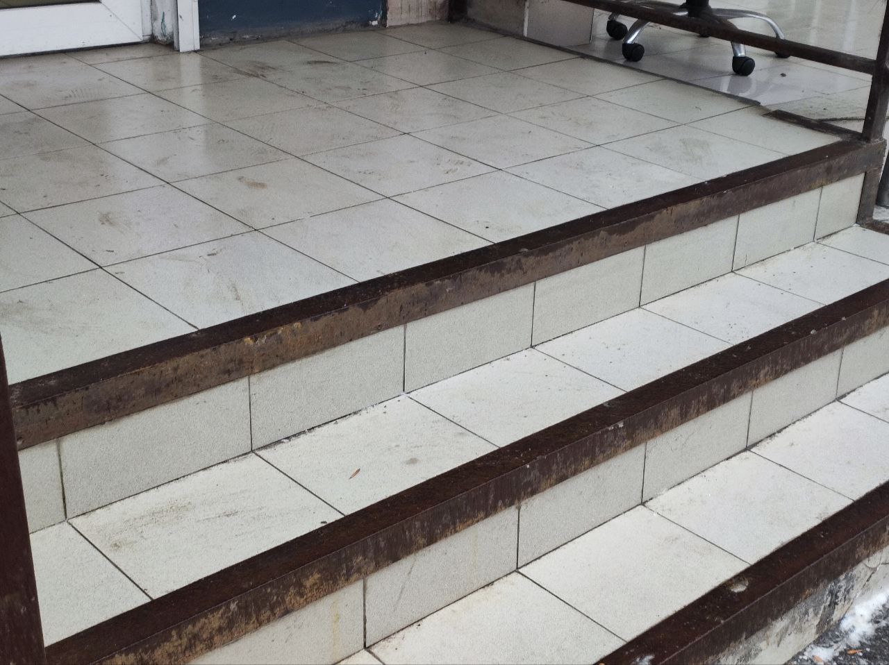 Также будьте осторожны при входе в аптеки, небольшие магазины, салоны. Здесь уложена гладкая плитка, которую легко мыть, но которая не рассчитана на слякоть и гололёд, - уже много людей упало на таких ступеньках.