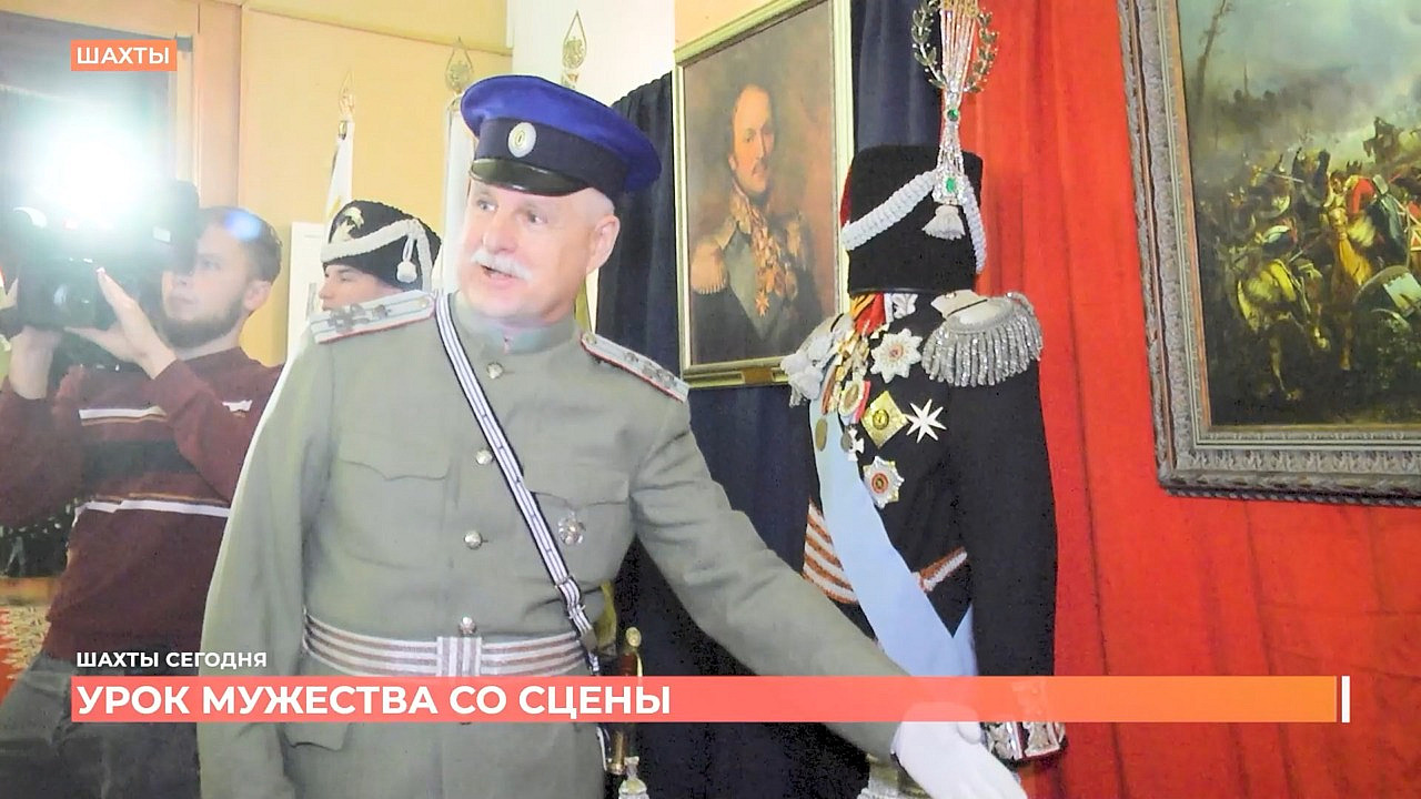 "Венчанным честью и доблестью" - тема необычного урока мужества, который провели в нашем театре. Это урок о Донской казачьей гвардии и ее истории в 250 лет. Артисты и зрители - кадеты и ученики казачьих школ. Начинают барабаны.