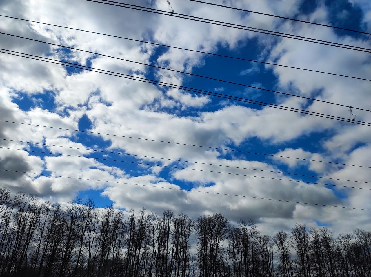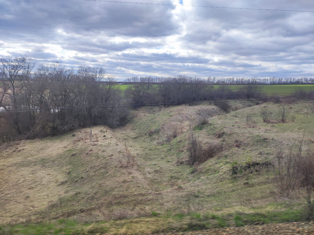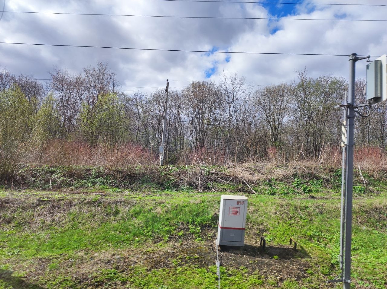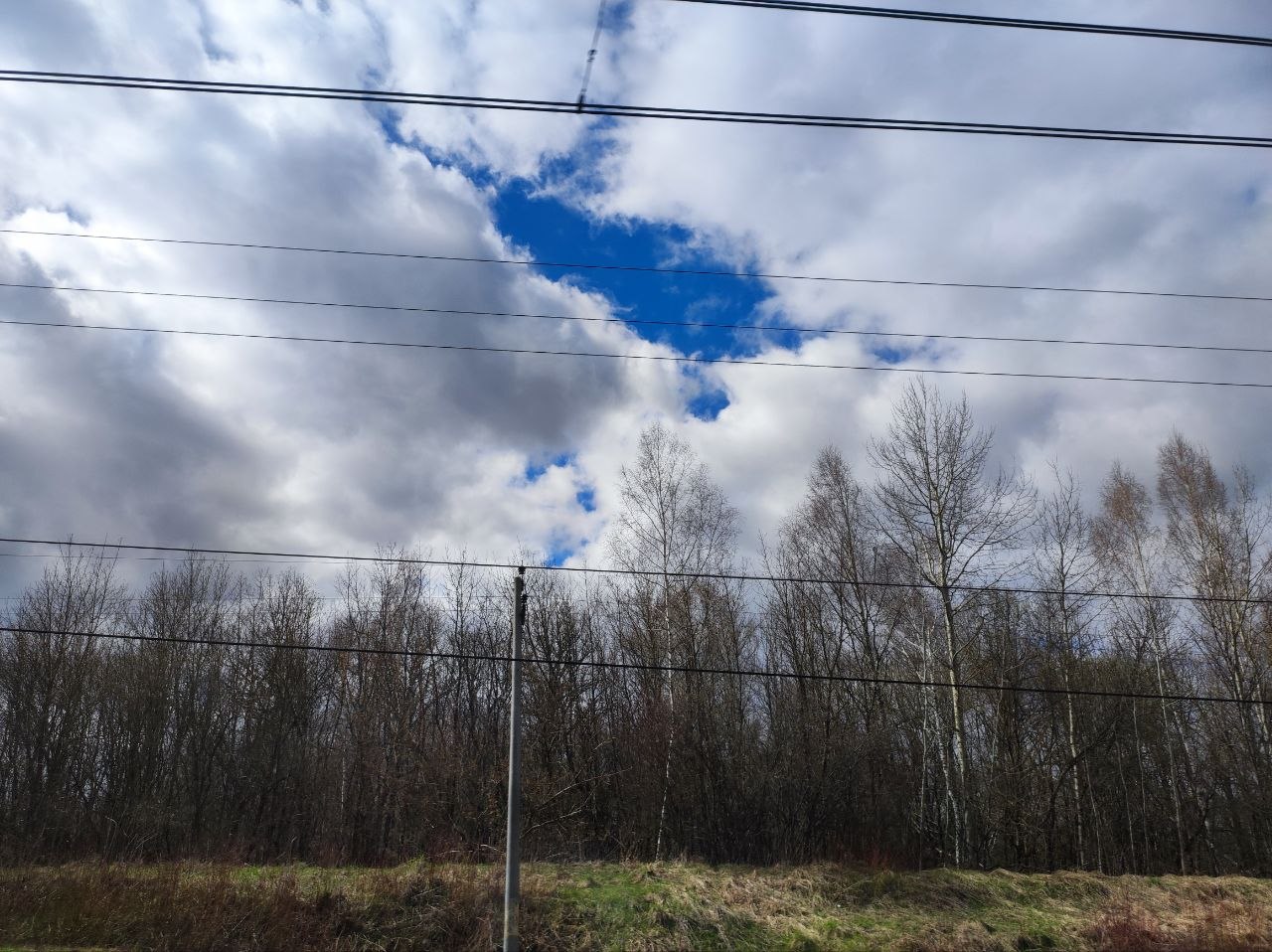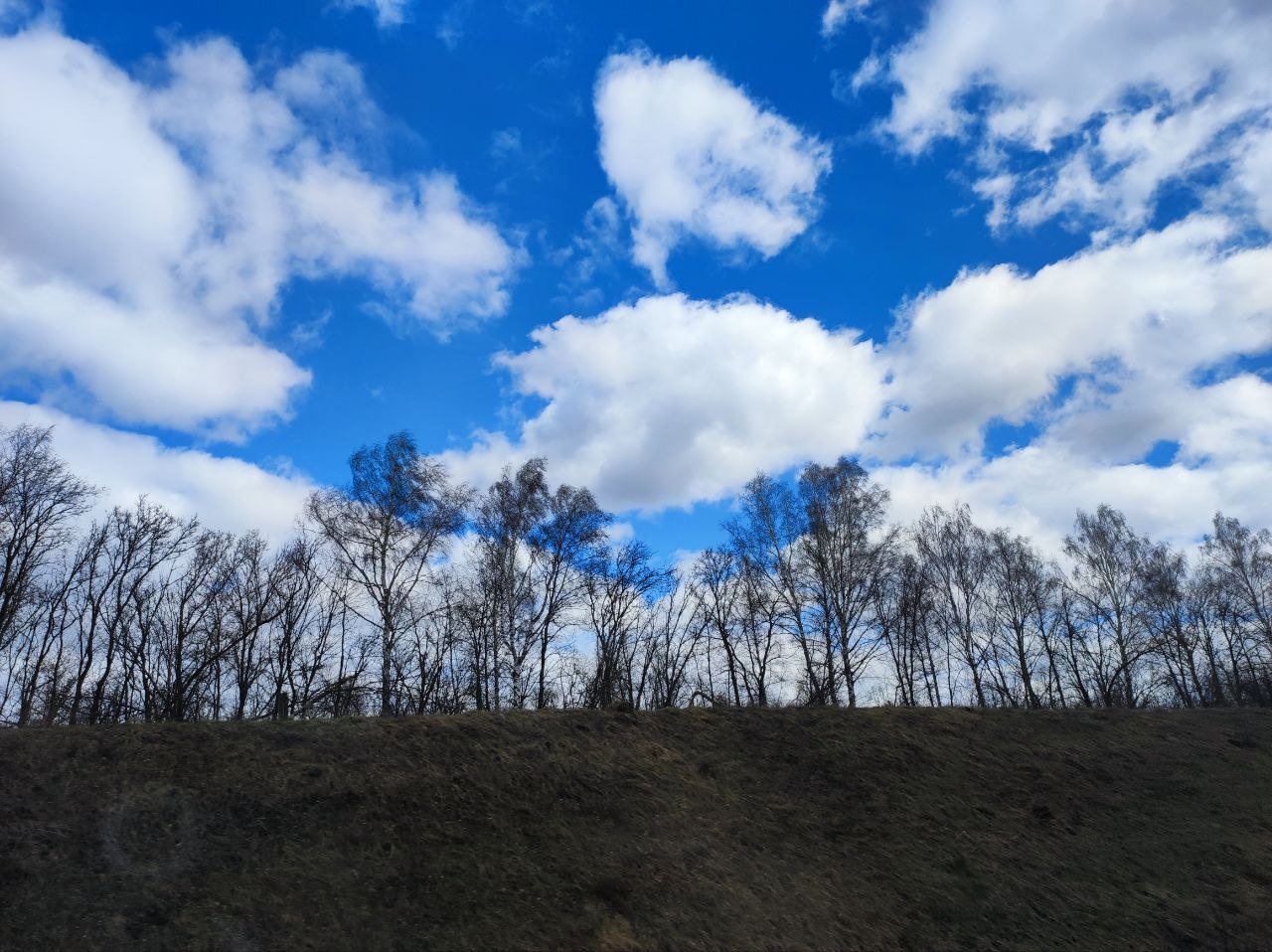 У нас уже бушует зелень, отцветают тюльпаны, сирень врывается в окна, а тут - чахлые перелески и рощицы Средней Руси, ещё не до конца стаявший снег, чёрная пугающая вода болотцев, бледные и беспомощные берёзки и осинки да засохшие с прошлого года заросли борщевика, с который и бороться-то уже бесполезно. Завезли его когда-то на эти бедные земли, чтобы было чем коровок кормить, а он возьми да и приживись - не справиться...