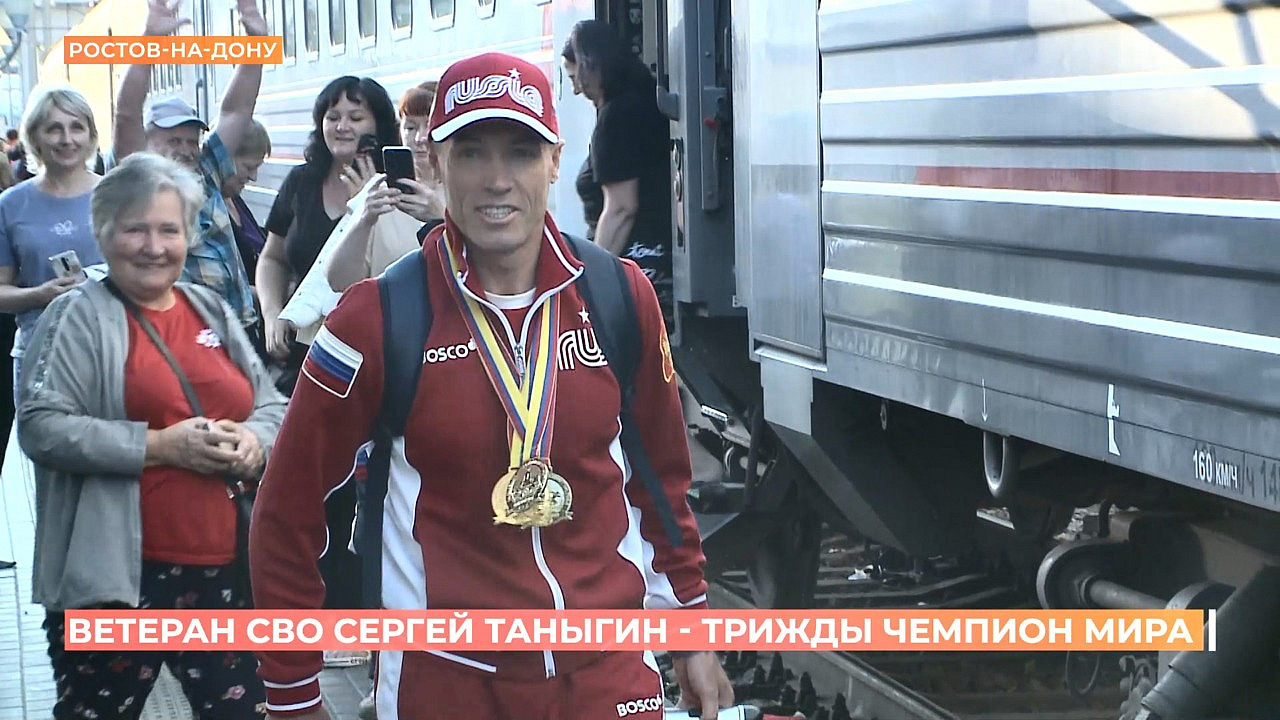 Ветеран СВО, кавалер ордена Мужества Сергей Таныгин из Батайска стал чемпионом мира по параатлетике среди военных. На соревнованиях в Эквадоре он обошел всех соперников на трех дистанциях: 800, тысяча 500 и 5 тысяч метров. Среди встречающих на ростовском вокзале и наша съемочная группа.