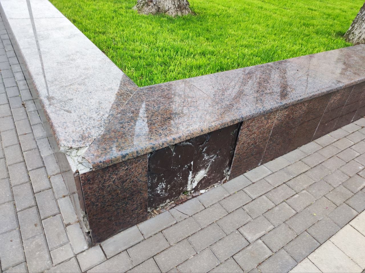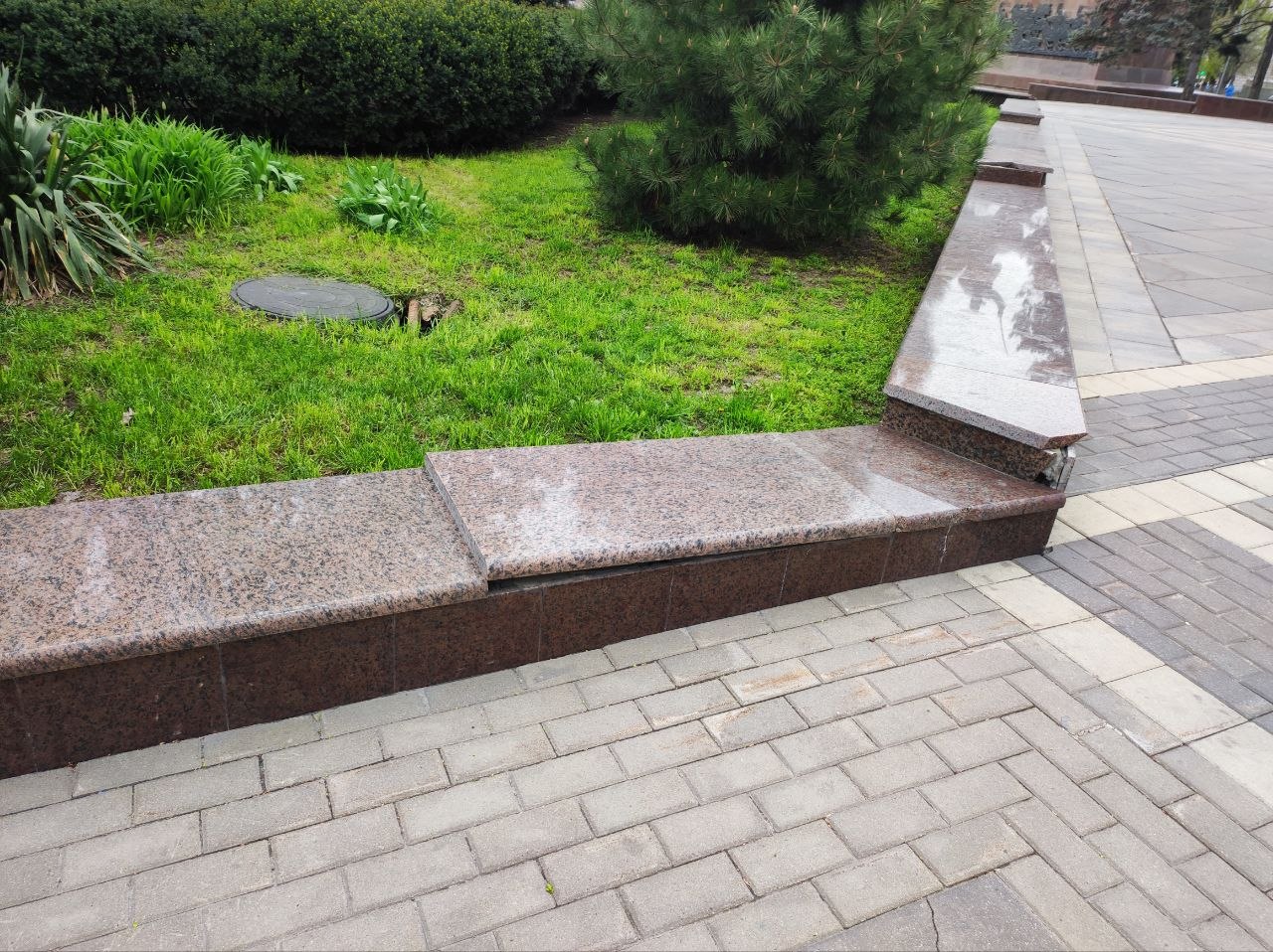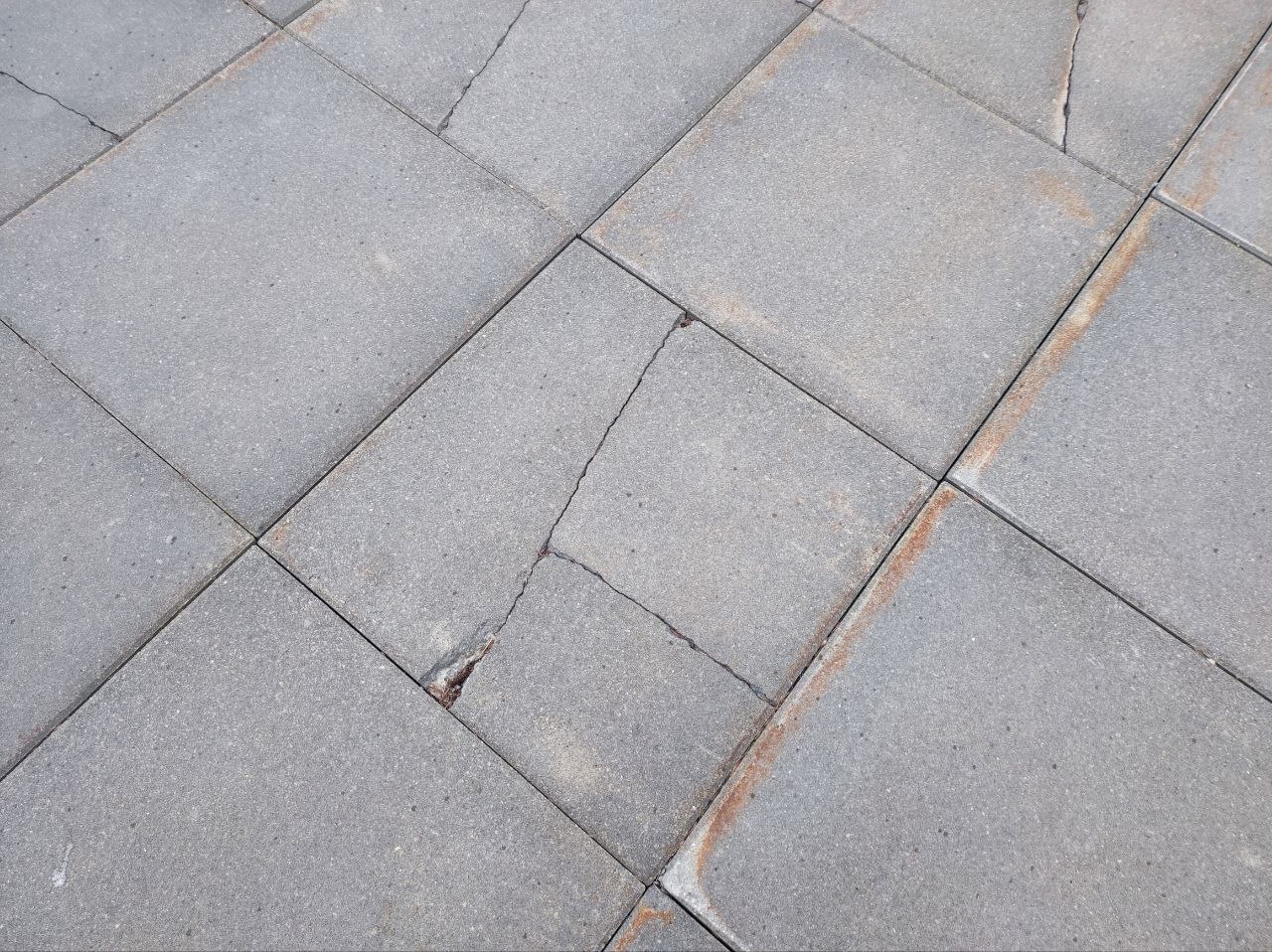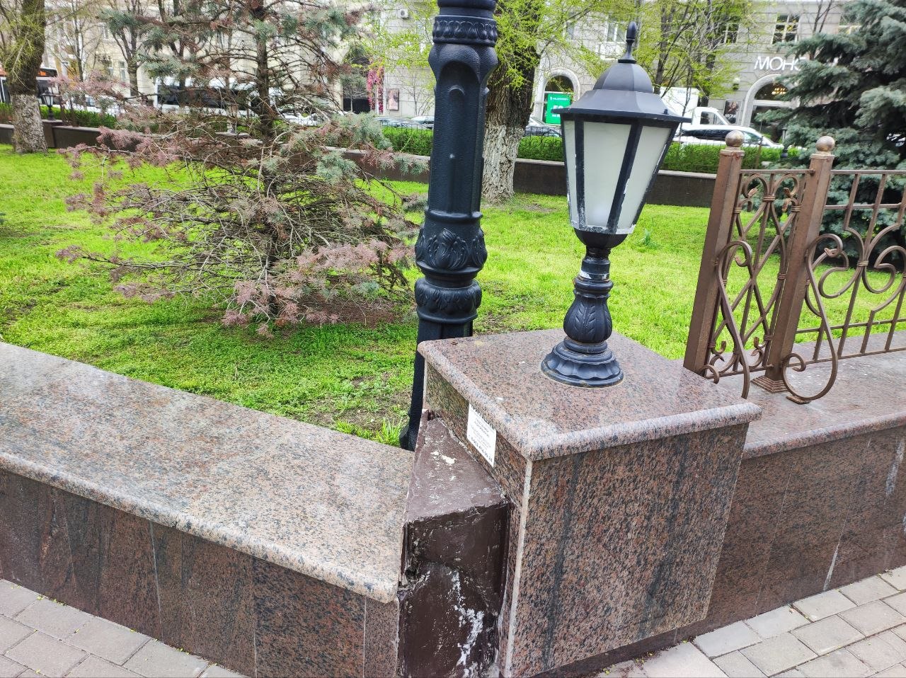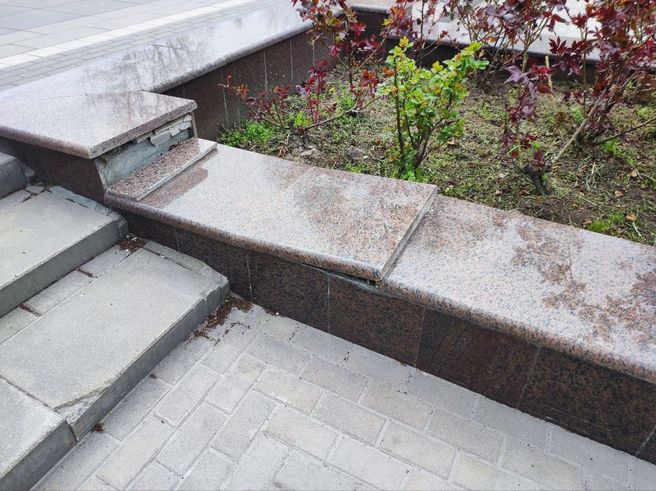Фонари вандалы постоянно ломают, а то и вырывают с корнями. По разбитой плитке уже опасно ходить, а отбитый мрамор закрашивают подходящего цвета краской.