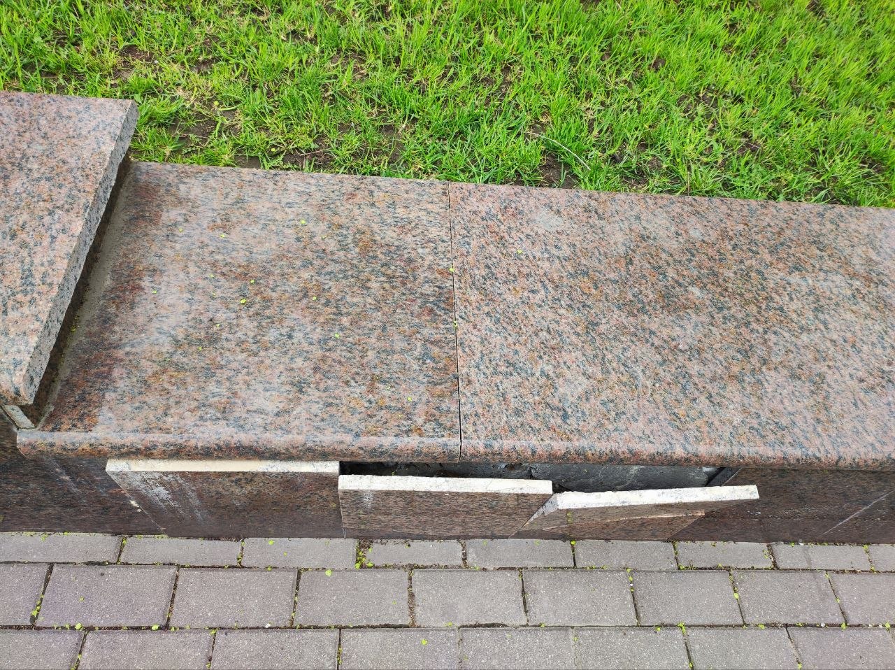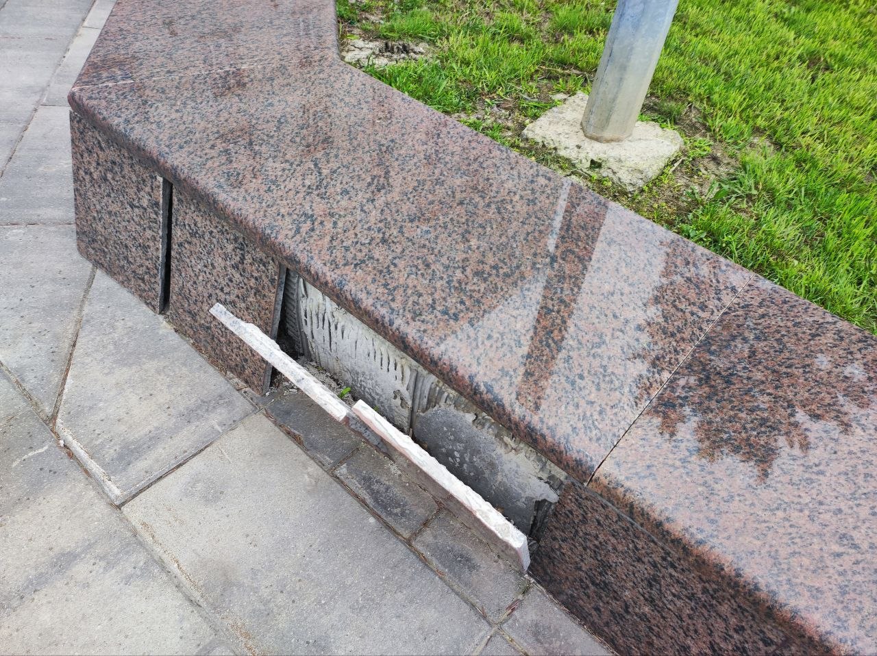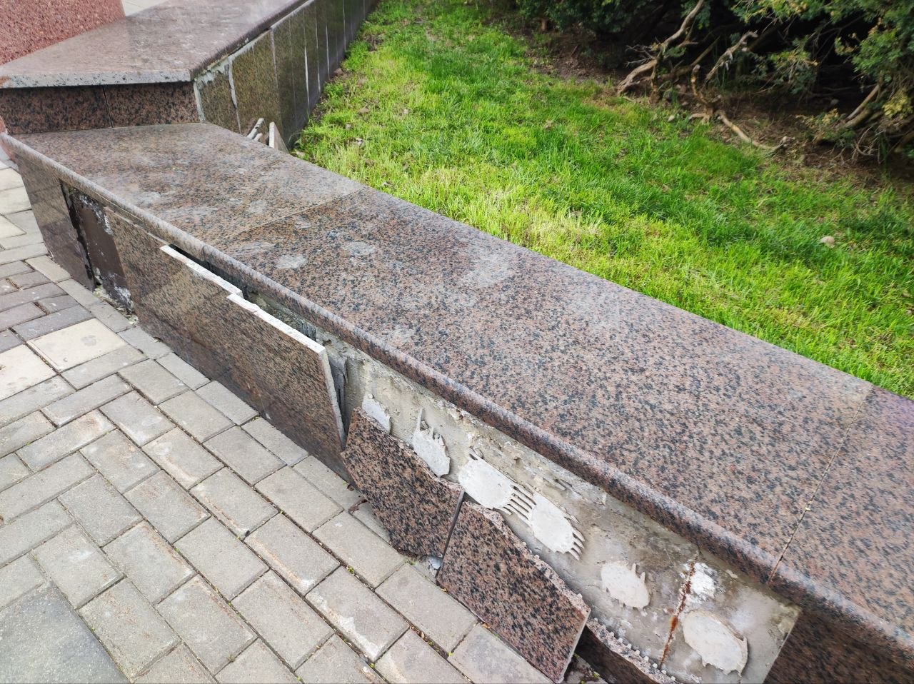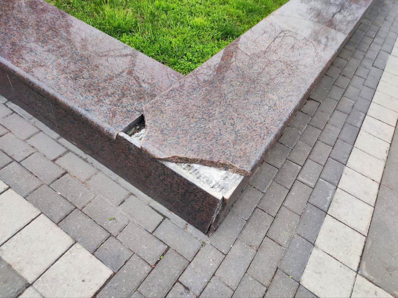 Фонари вандалы постоянно ломают, а то и вырывают с корнями. По разбитой плитке уже опасно ходить, а отбитый мрамор закрашивают подходящего цвета краской.