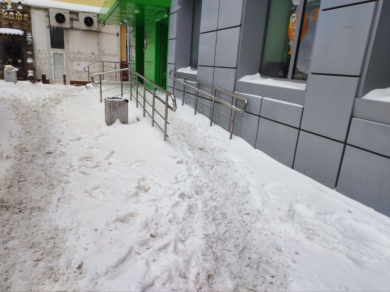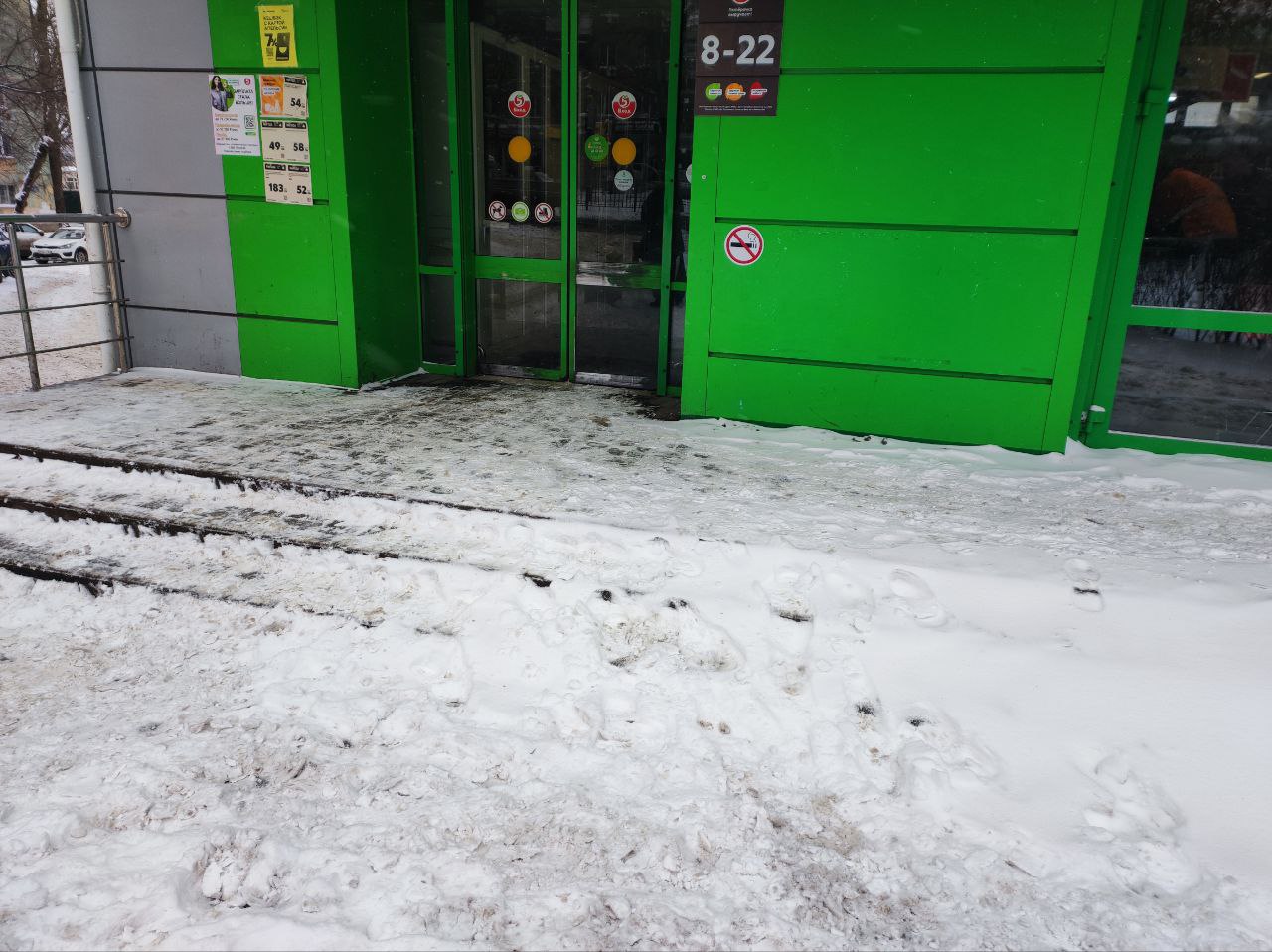 Также есть торговые сети, которые не слишком-то уважительно относятся к покупателям, - не чищены не только ступеньки на входе, но и пандусы для инвалидов. О прилегающей территории уж и вовсе не говорим: дорогу к магазинам протаптывают сами покупатели. Хотя это серьёзное нарушение, за которое менеджерам грозит административное наказание.