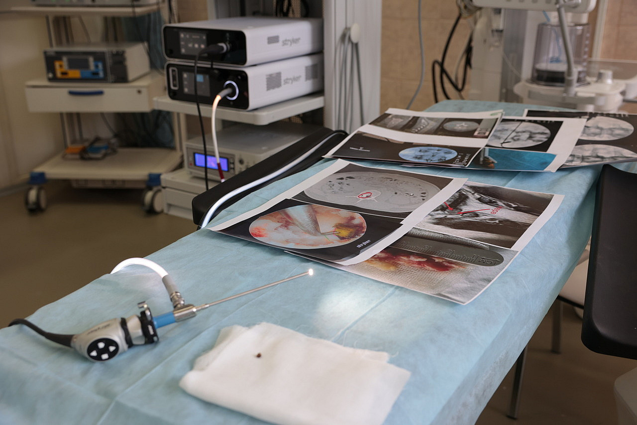 Ключевое приобретение - уникальная эндоскопическая стойка с камерой сверхвысокого разрешения 4K и специализированными манипуляторами. Оборудование позволяет проводить точечные вмешательства на позвоночнике: удалять грыжи и извлекать инородные предметы, включая осколки после ранений у бойцов СВО. Технология обеспечивает минимальную травматизацию тканей, а восстановление занимает считаные часы, пациента могут сразу перевести в отделение реабилитации.
