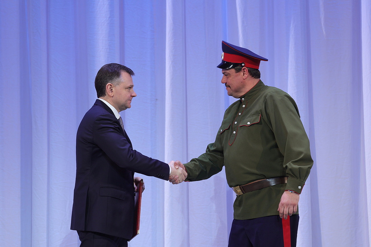 «Это не просто дата — это история сохранения духовного достояния донского казачества. Глядя на ваш коллектив, мы видим, что на Дону живы вековые устои и непреходящие ценности: мужество, вера, честь, любовь к Родине», — сказал Юрий Слюсарь.