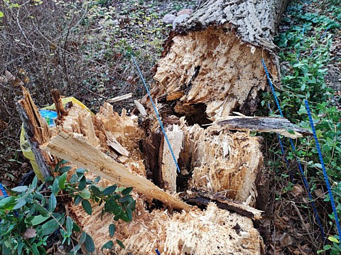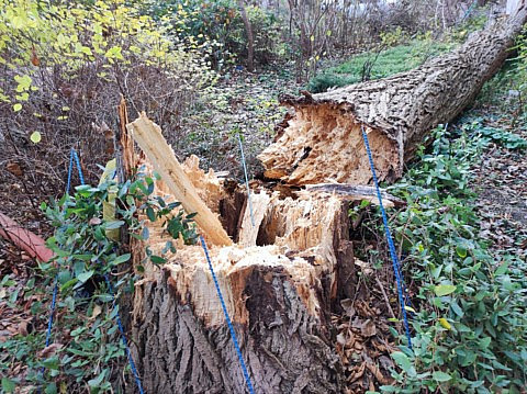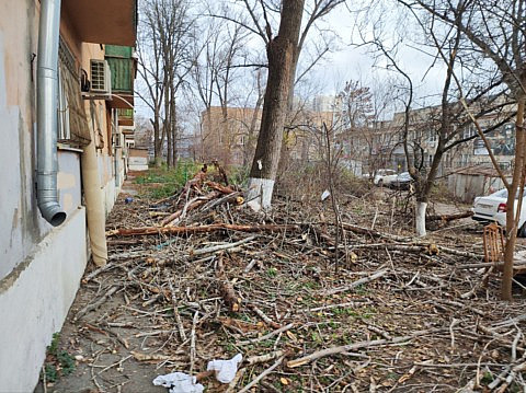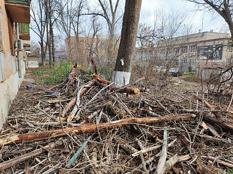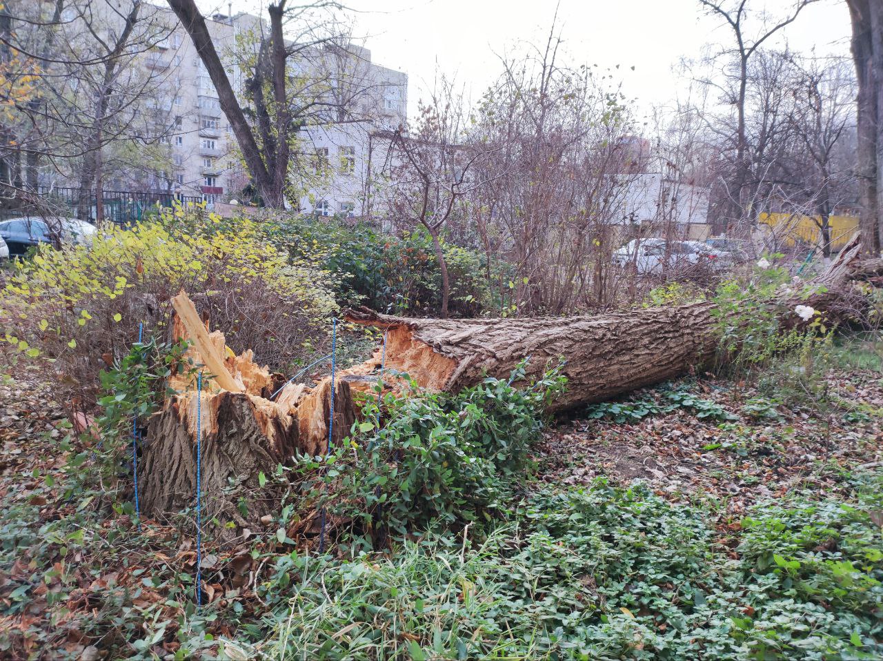 По счастливой случайности, никто не пострадал. Ветками лишь выбило несколько стёкол в квартирах да задело пару балконов. Ну, и захламило ветками весь двор. Может, тоже, как и листья, будут лежать много лет...