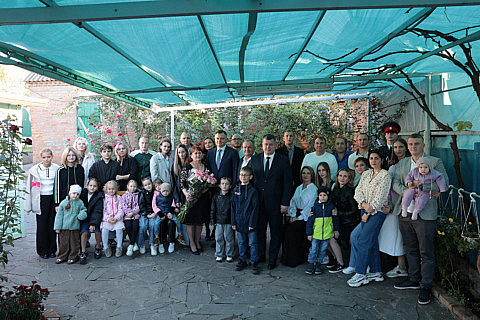В семье Короченцевых жизнь уже 45 лет строится на любви и взаимопонимании. Любовь Анатольевна и Петр Михайлович прошли вместе долгий путь, вырастив двенадцать детей — шесть сыновей и шесть дочерей. Все дочери тоже стали многодетными мамами, а всего в семейной истории Короченцевых уже двадцать пять внуков. Короченцевы поделились с губернатором секретом большой дружной семьи: все возникающие проблемы и конфликты обсуждать сразу, не откладывая на потом, и сразу договариваться по всем вопросам.