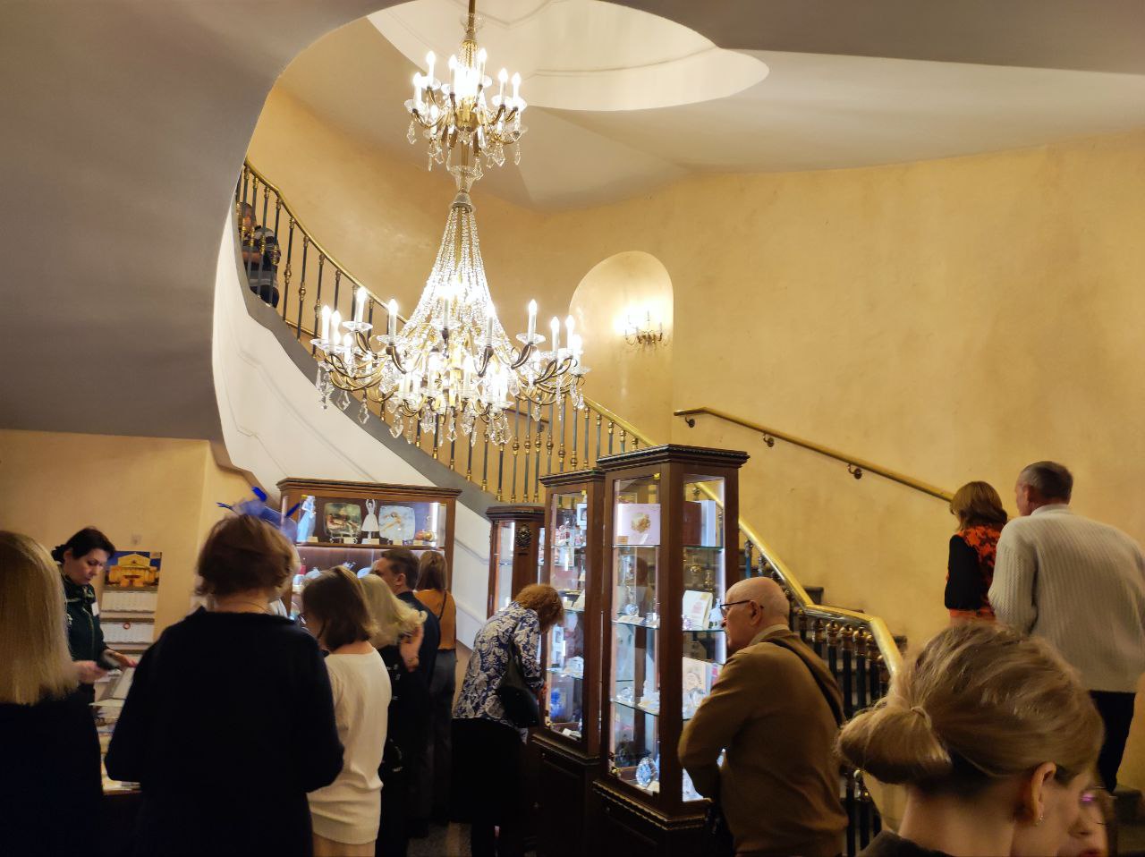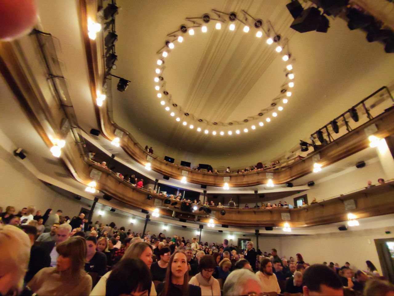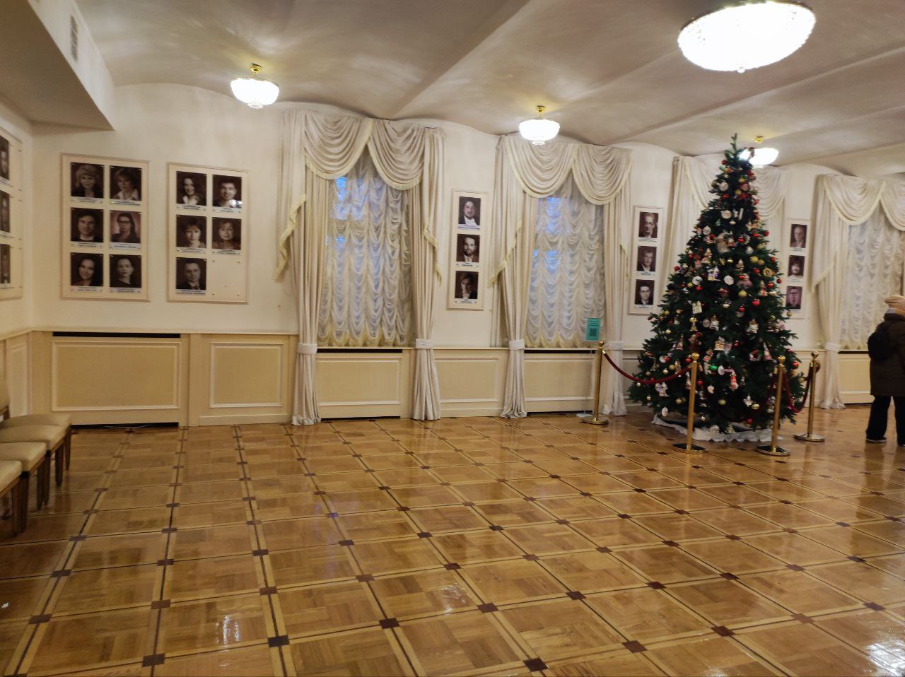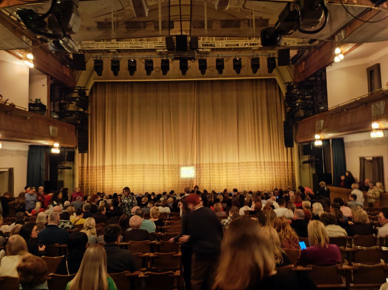 Сам по себе театр довольно тесный, хоть и красивый. Пространства для зрителей вне зала очень мало, в антракте столпотворение. Буфет без предварительного заказа столика вряд ли удастся посетить. Ну, и в основном на ногах.